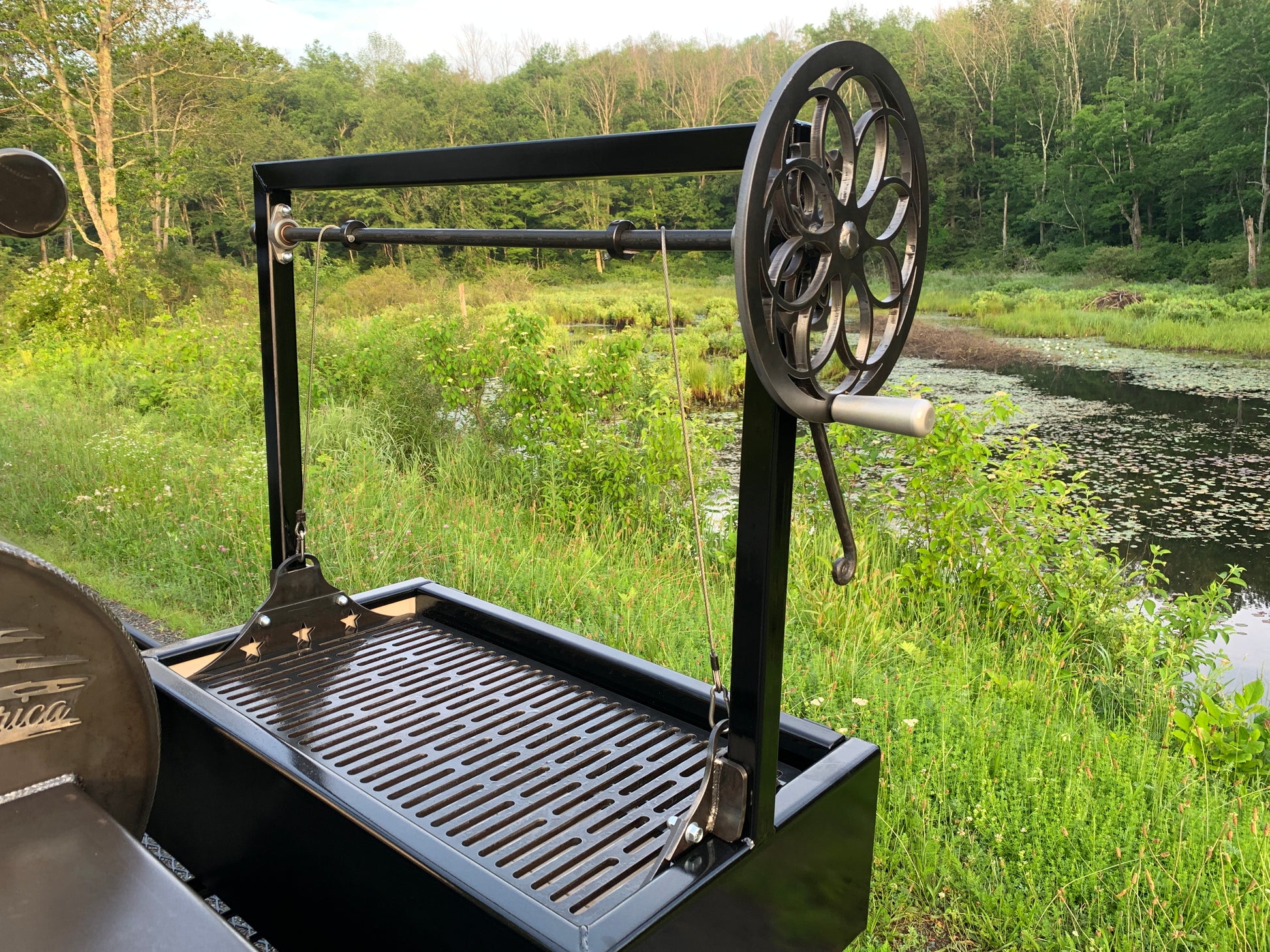 All made from 3/8"-thick steel. 1,400 sq in of cooking space. Add a top rack for even more space.